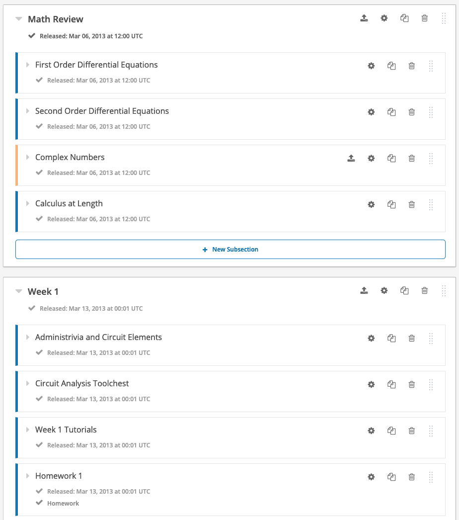 Cree y publique las secciones para sus estudiantes de forma incremental. No es necesario que lo tengas todo hecho de una vez.